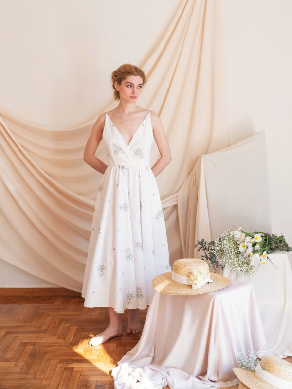 μακρύ φόρεμα με V-λαιμόκοψη και τιράντα