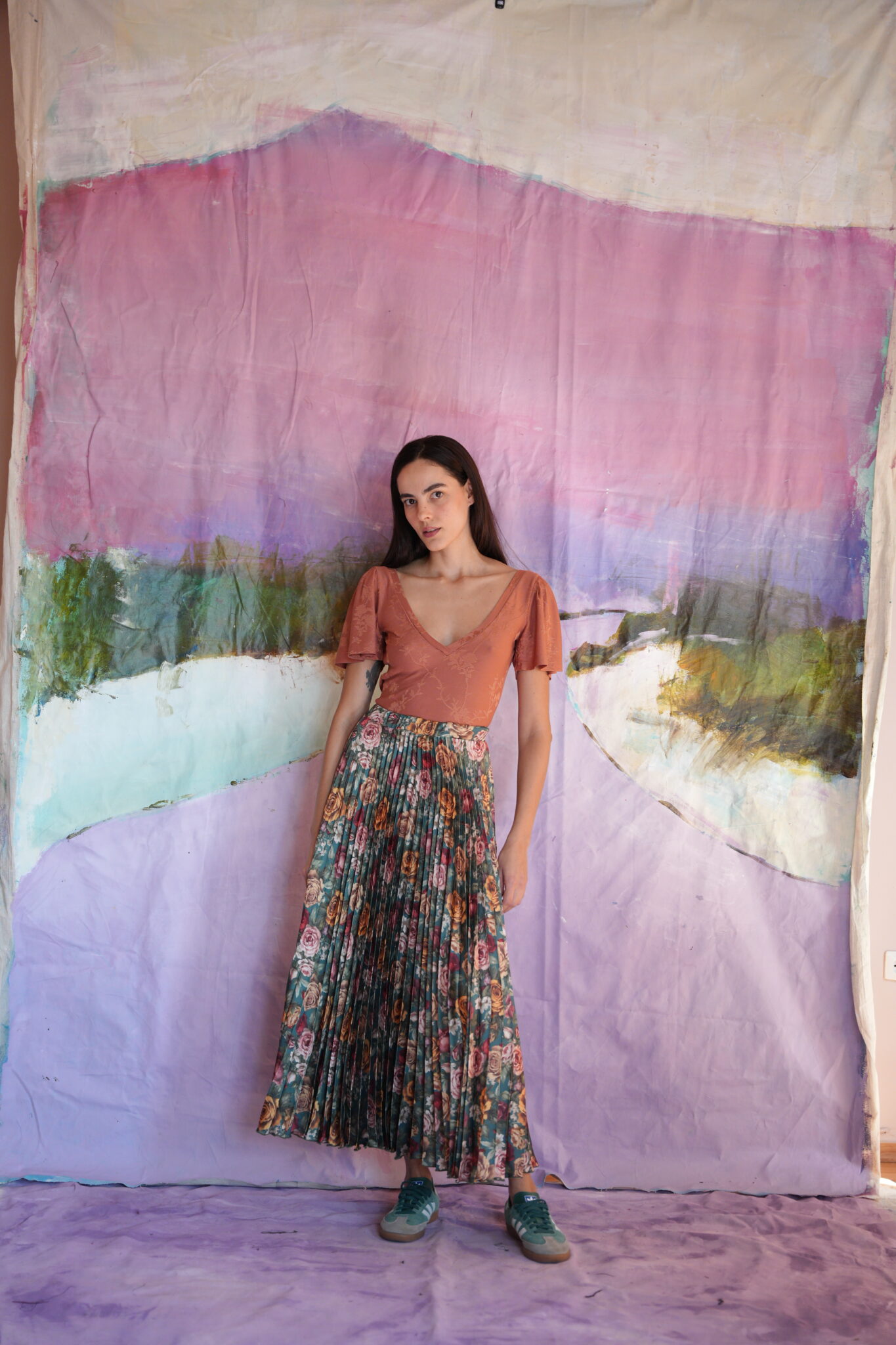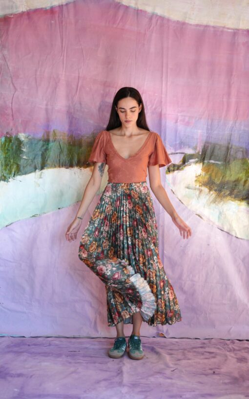 Day-to-night body with v-neck,an open back and little details of embroidered flowers.